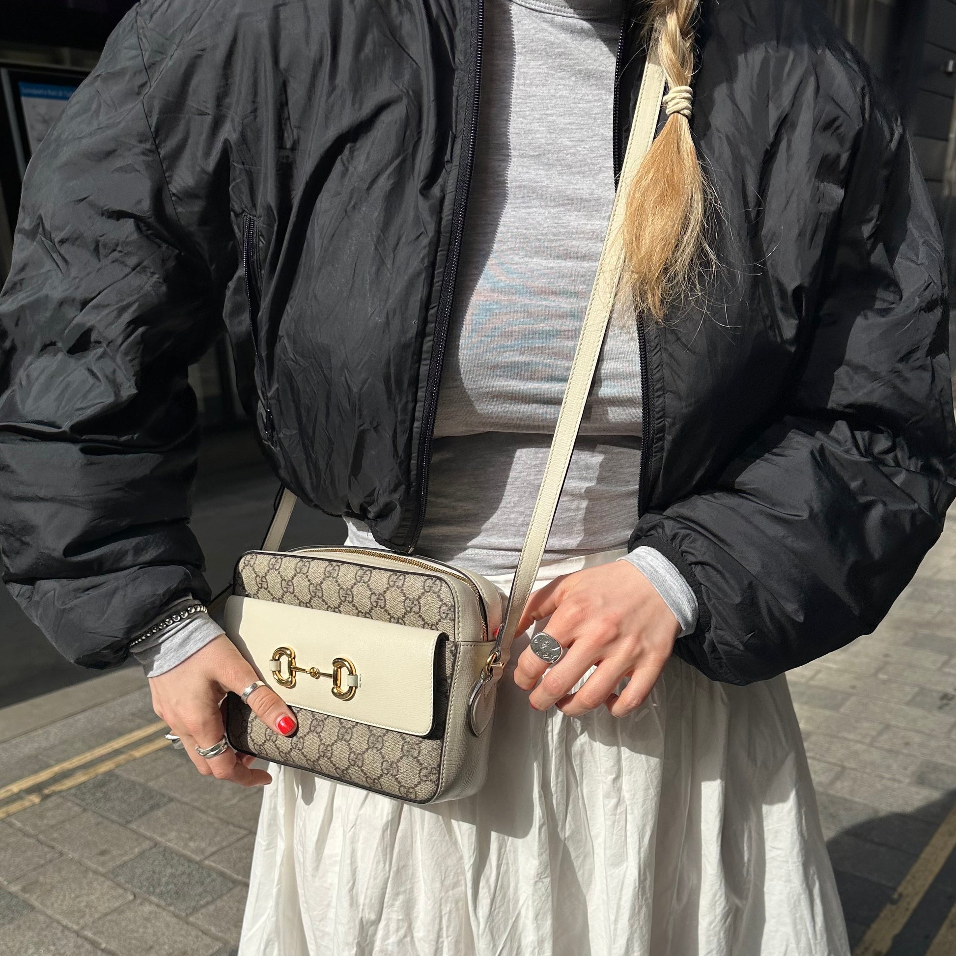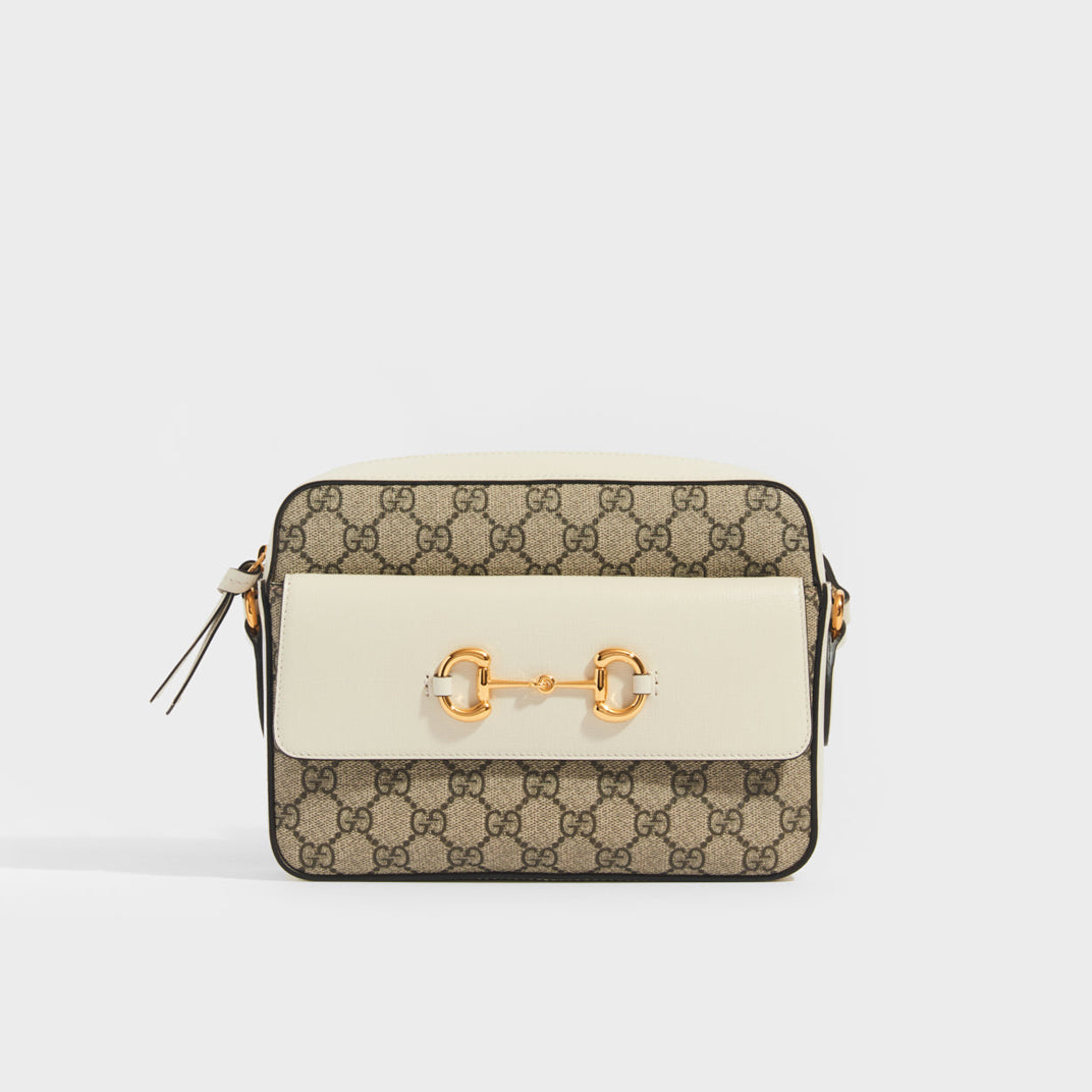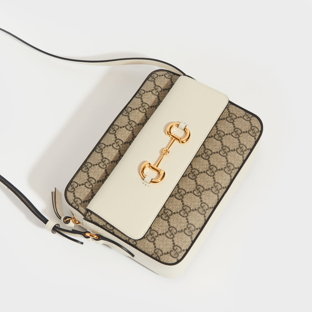 Horsebit 1955 GG Supreme Small Crossbody Bag with White Leather Trim
