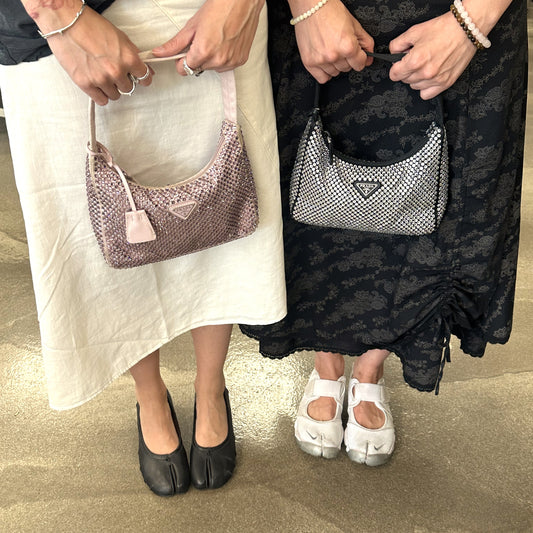 Prada hobo re-edition bags are the ultimate Prada handbag. Whether it's a 2000 hobo shoulder bag, which has the canvas strap, or the 2005 crossbody hobo, which has a leather strap and comes in a wider array of colours and shapes, the Prada canvas re-edition bag is the Y2K bag of dreams. You're spoilt for choice with our selection of Prada hobo bags in nylon, saffiano leather and with crystals.