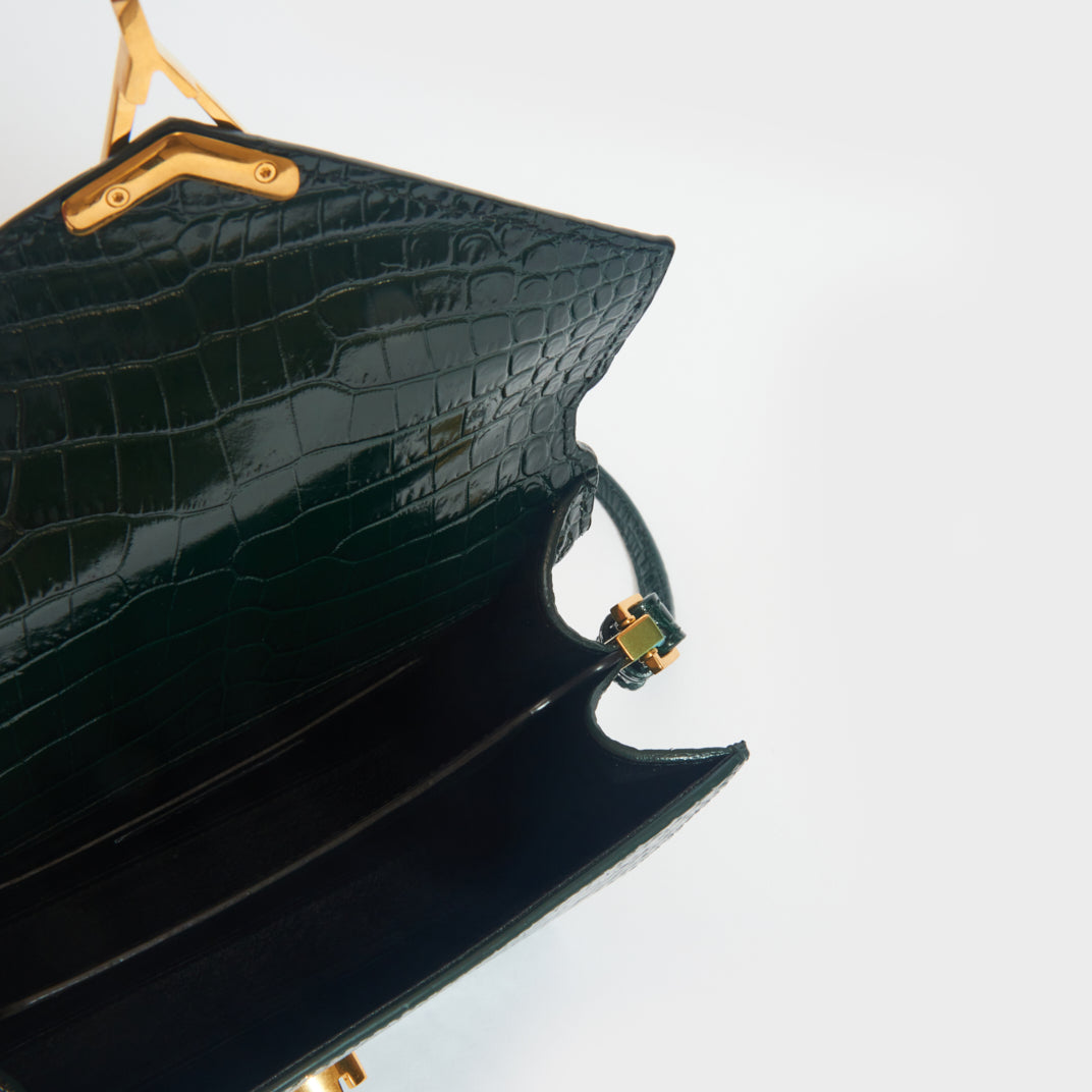 Mini Cassandra Crocodile-Embossed Shiny Leather in Mint