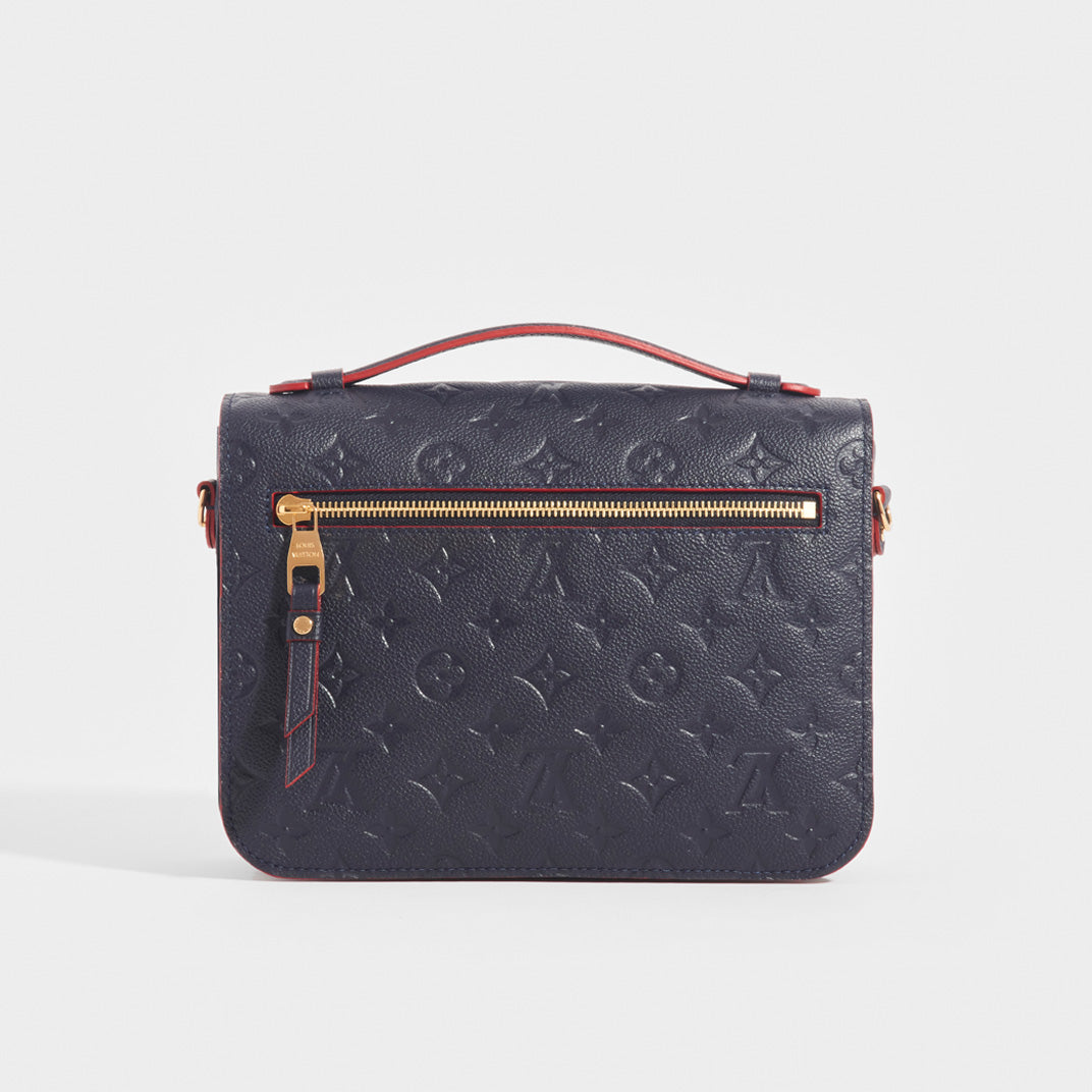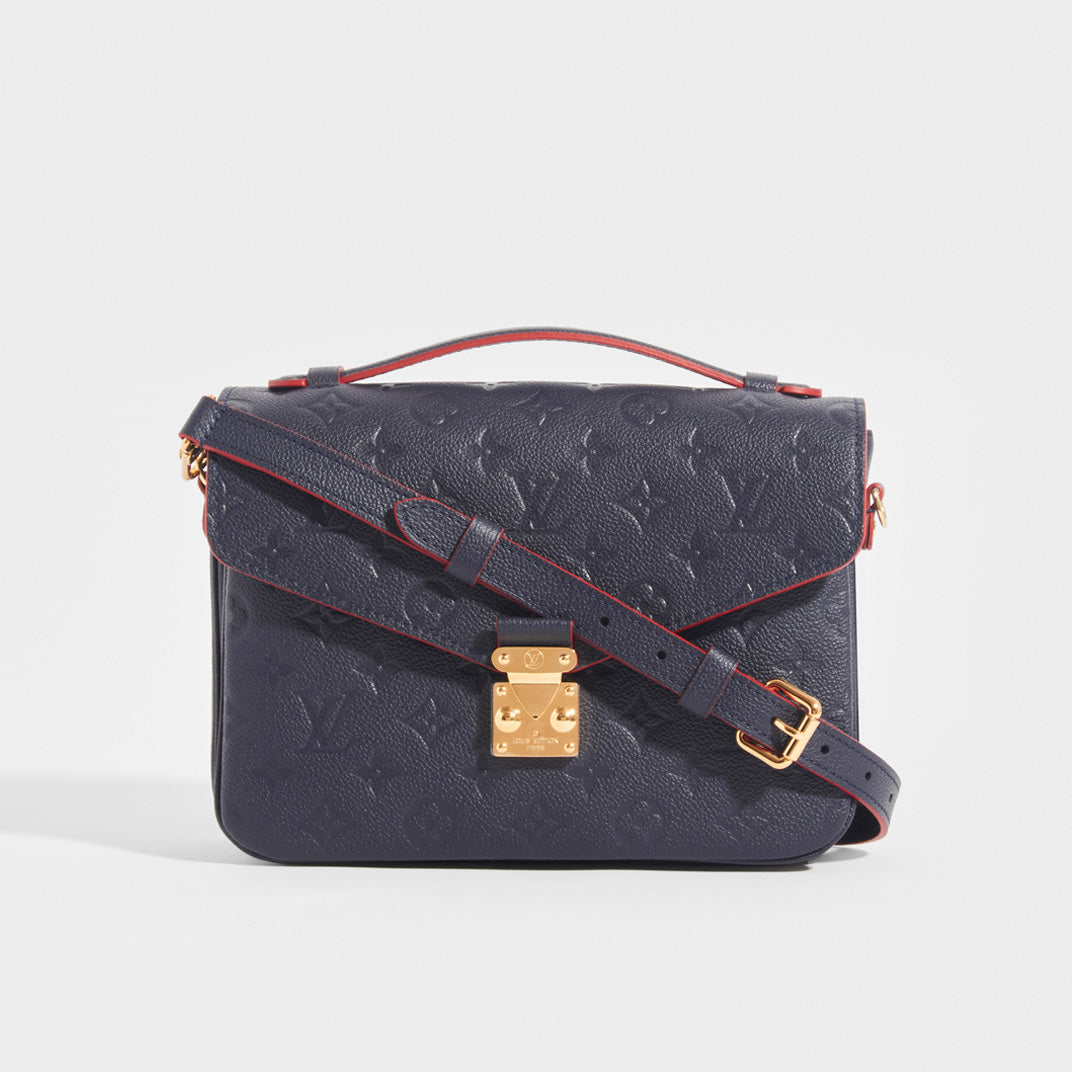 Another lust-worthy updated classic from Louis Vuitton. We just can’t get enough of this scaled-down satchel style, crafted in navy blue monogram embossed supple grained cowhide leather with contrasting red trim and lining. Choose to wear this covetable model crossbody, on the shoulder or remove the detachable, adjustable strap to carry it with the chic top handle and you’re ready!