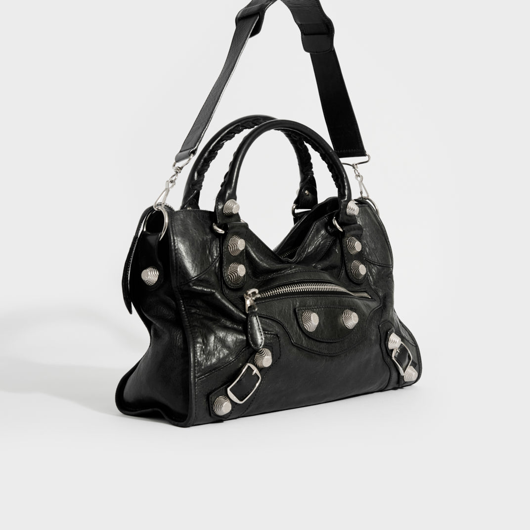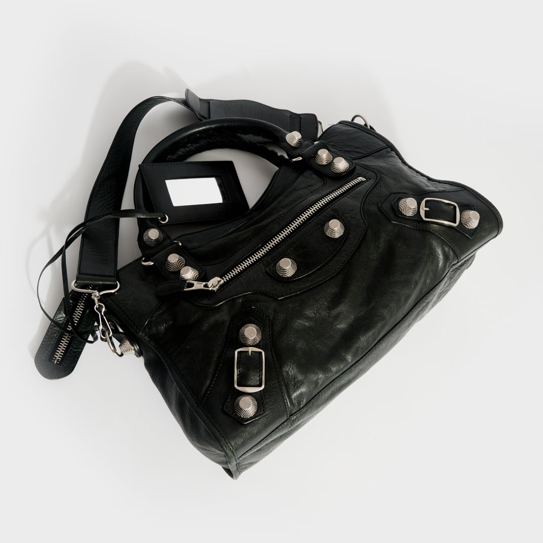 Sometimes simplicity is key, as proven here with the Balenciaga City medium bag. Creative director Nicolas Ghesquiere’s design for the bag was at first dismissed by the brand, but the designer persisted. The subtle ‘no logo’ and ‘very light’ weight style won over the likes of Kate Moss and Carine Roitfeld and the new IT bag was born. Crafted from distressed lambskin leather, it’s defined by long tassels, silver-toned studs and a mirror, and topped with twin top handles and a detachable shoulder strap. Fastened with a zip, the motorcycle accessory opens to a spacious compartment with an interior zip pocket.