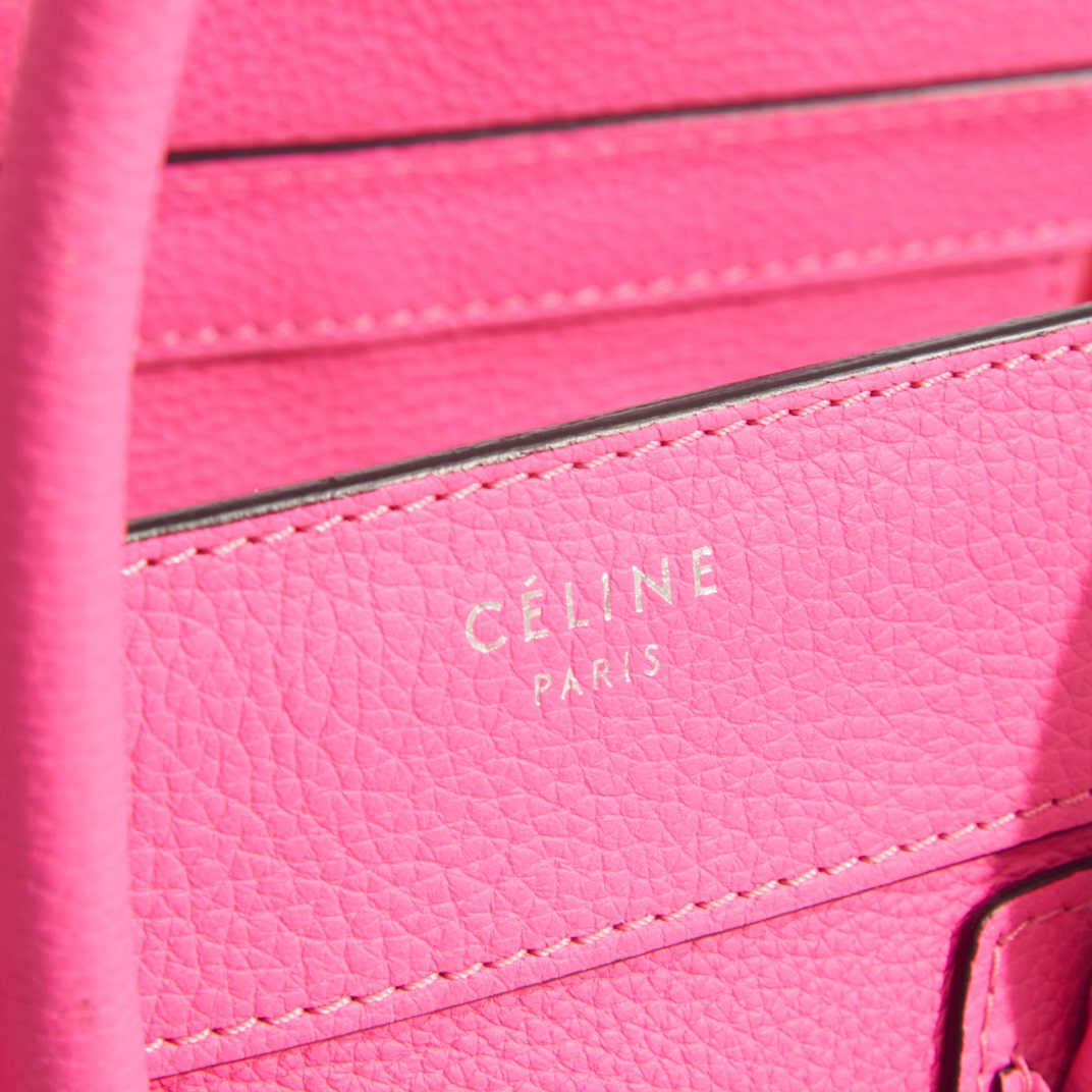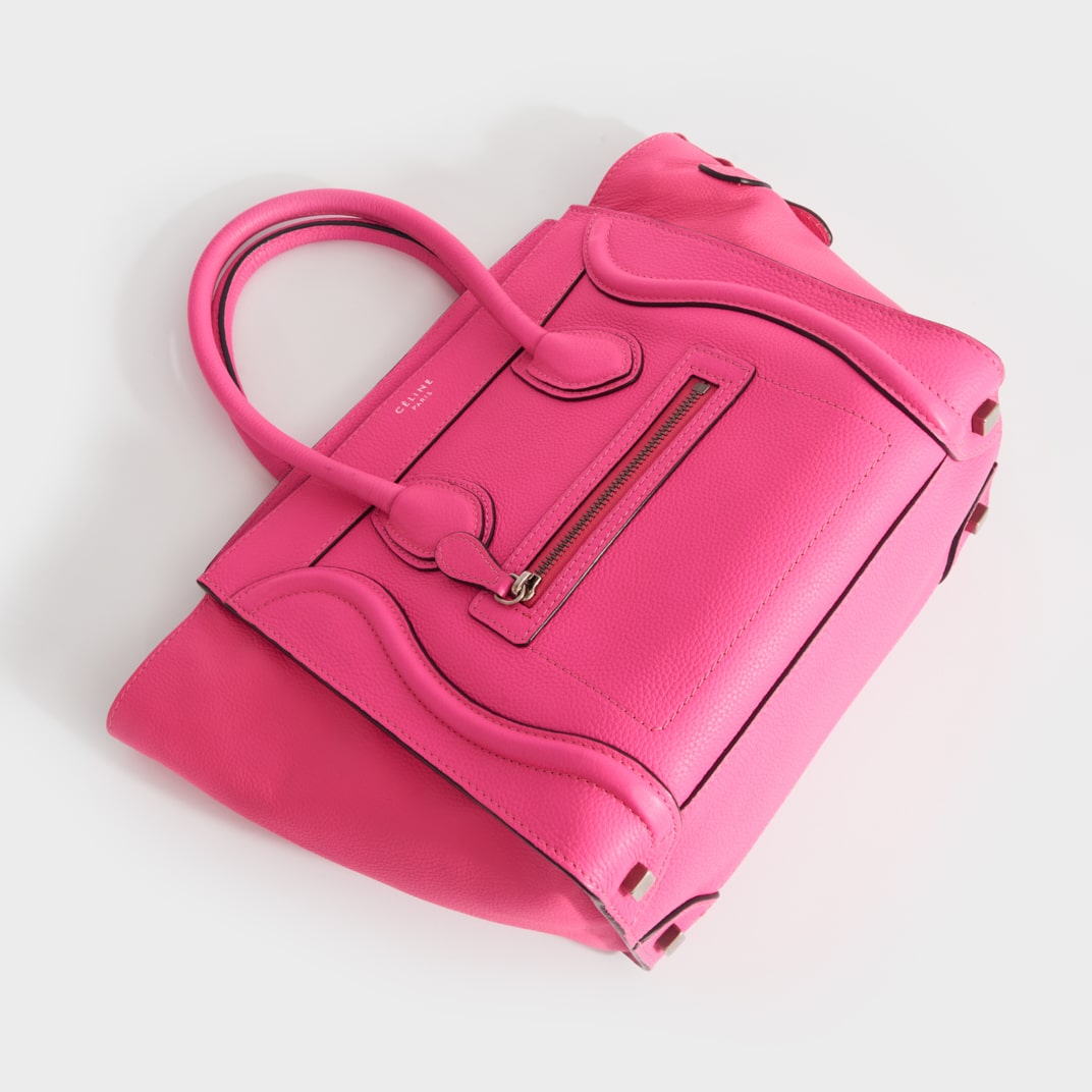 Introduced by celebrated designer Phoebe Philo, the Celine Micro Luggage Shopper is the standout style your wardrobe has been waiting for. This neon pink version was created exclusively for Celine's Cruise 2012 collection and remains a highly sought after adaptation. Adding a playful twist to this otherwise minimalistic design, this unique Micro Luggage Shopper in Neon Pink is a stand-out must have. Featuring a spacious interior and zipped compartments to keep your belonging safe, this is the perfect bag to take you from desk to drinks.