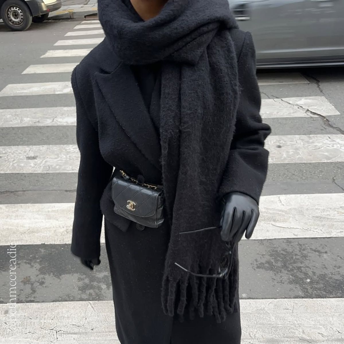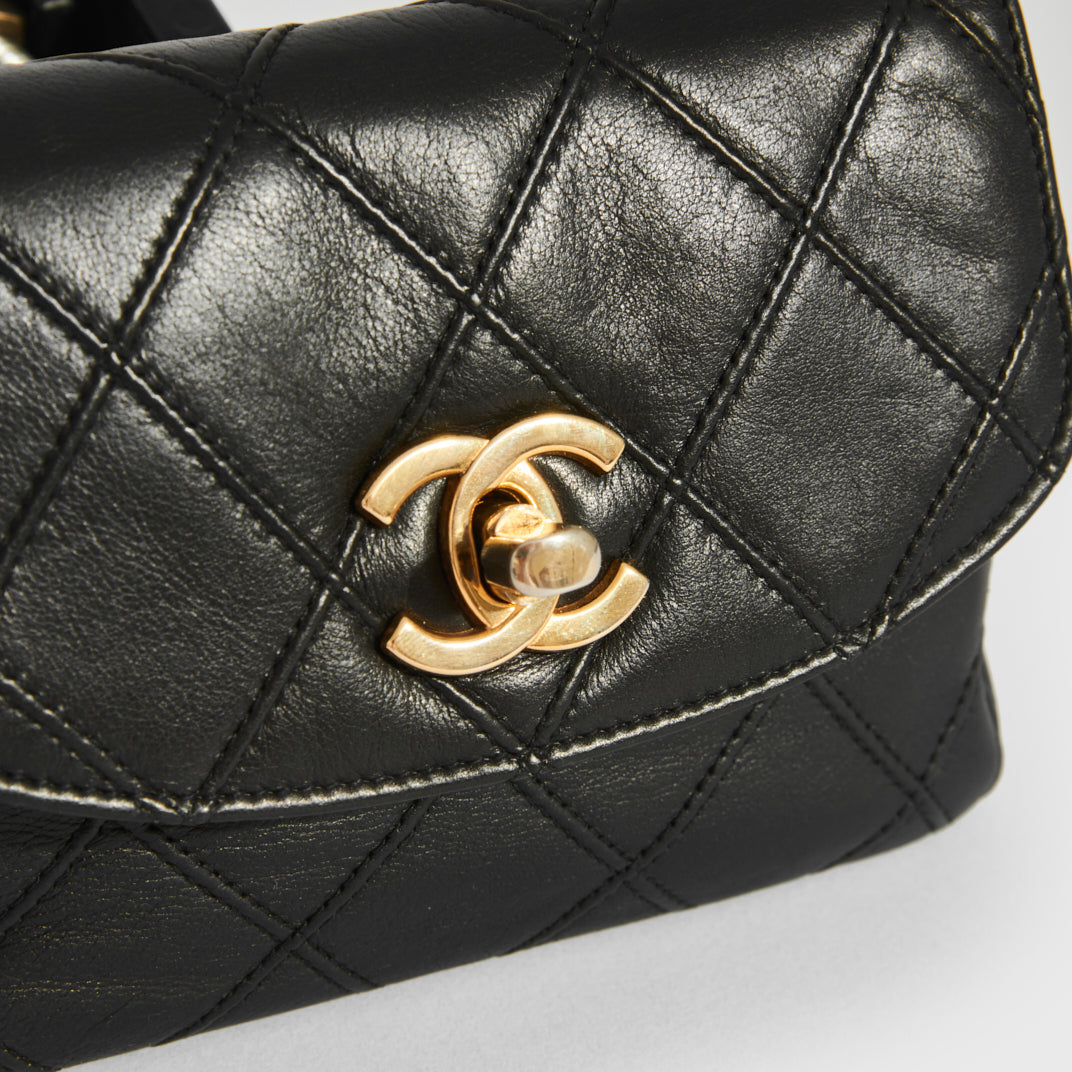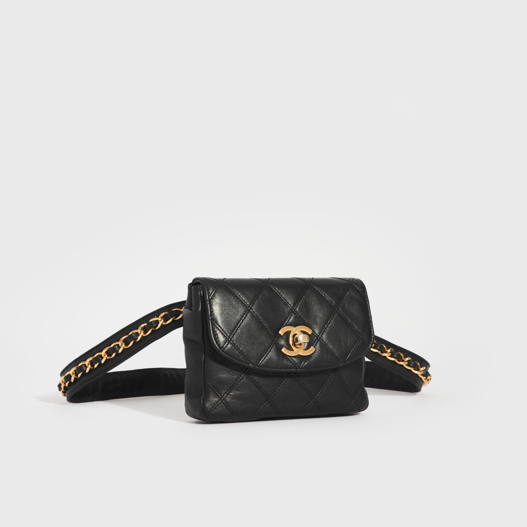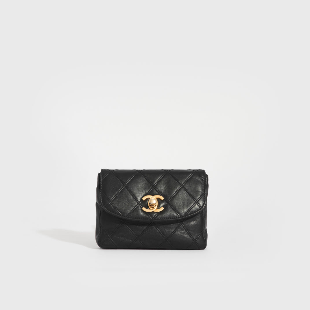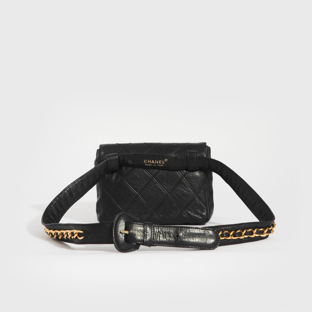 Vintage CC Single Flap Lambskin Belt Bag in Black
