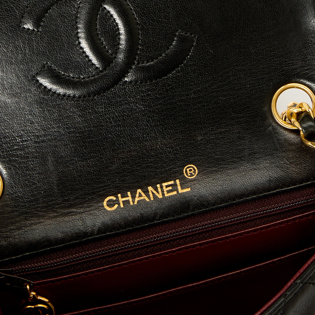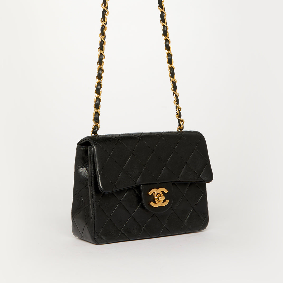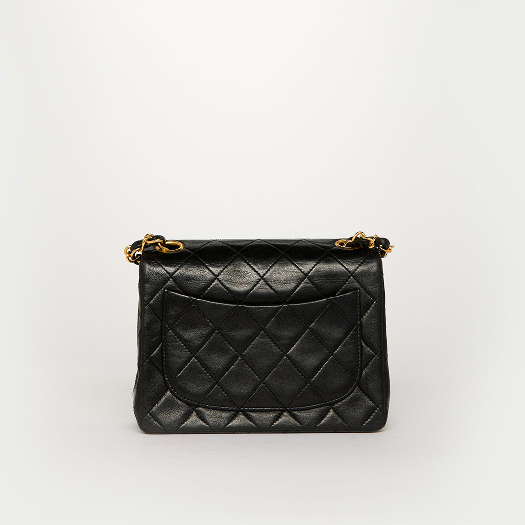 Mini Square Classic Single Flap Shoulder Bag in Black Lambskin