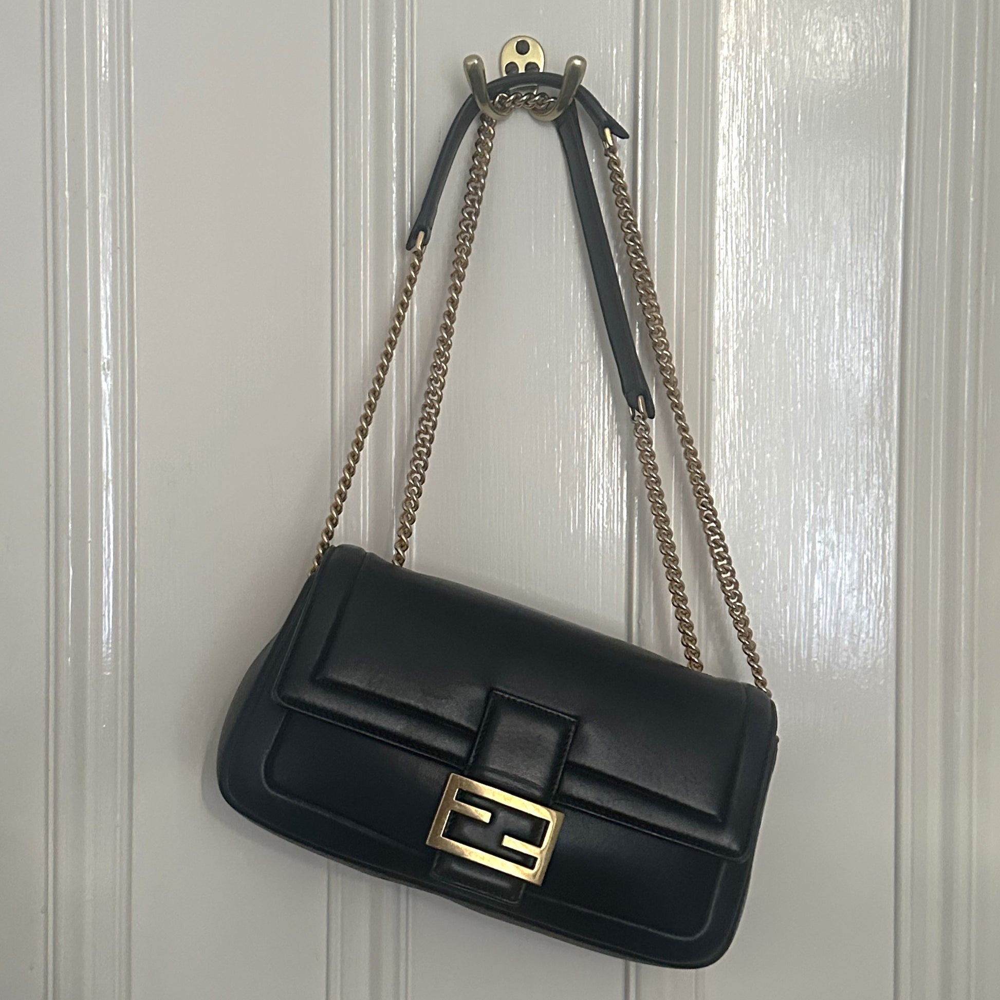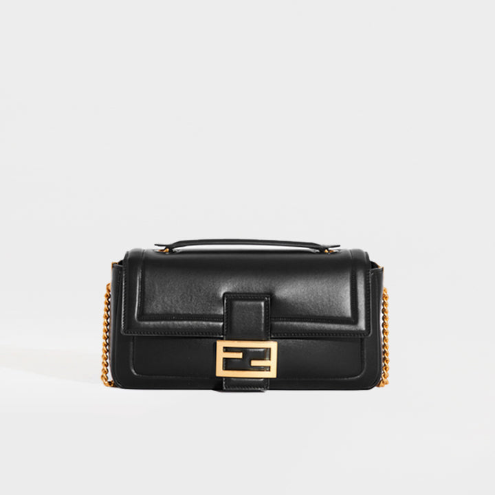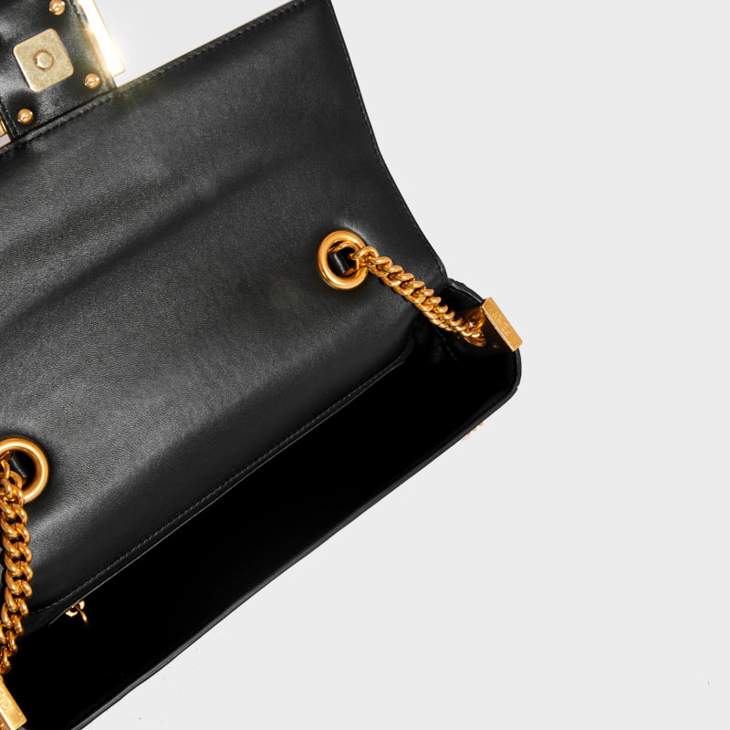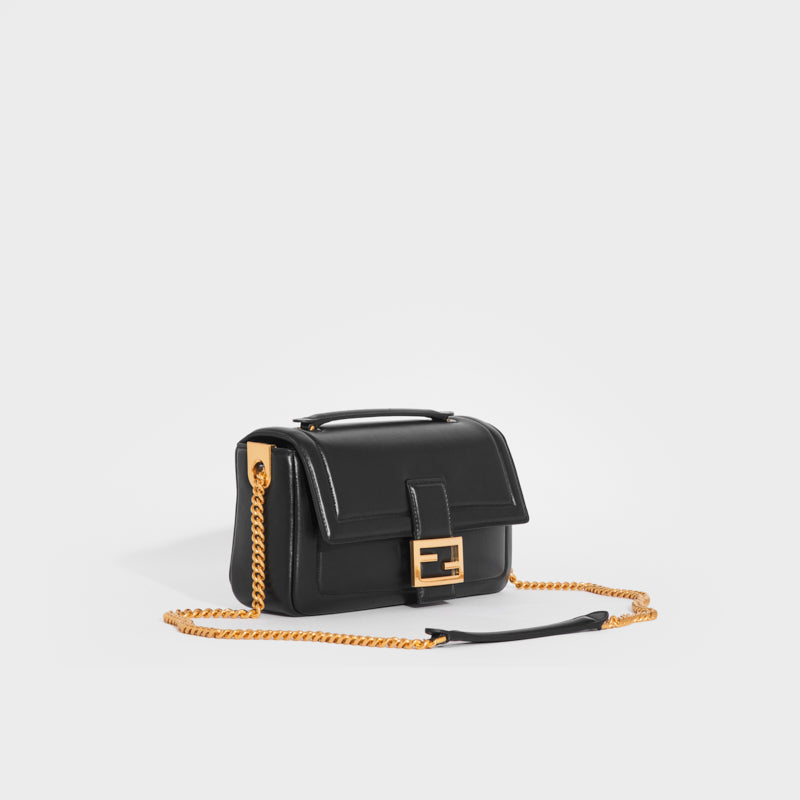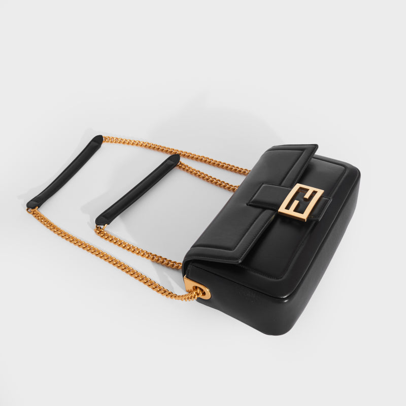 Baguette Chain Shoulder Bag in Black Nappa Leather