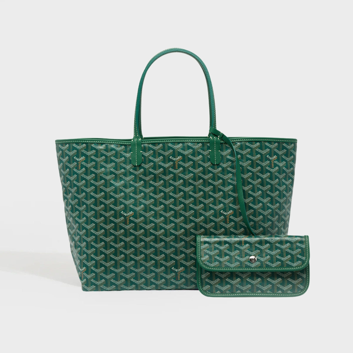 Did you know, Goyard is the only major luxury brand to not sell their goods online? Meaning getting your hands on the brand's most iconic style, the Saint Louis PM Tote, is even more exciting. Cited as the luxury tote bag, the Saint Louis PM is often noted as a main competitor to Louis Vuitton's Neverfull Bag. Made with green coated canvas and printed with the brand’s signature three dimensional handprinted chevron motif, it’s an instant hit for those on-the-go. The handles and trims are 100% leather, and it has a detachable pochette, front flap pocket and of course huge internal compartment. Big enough for your laptop or your favourite magazine for a day in the park- the Saint Louis has it under control.