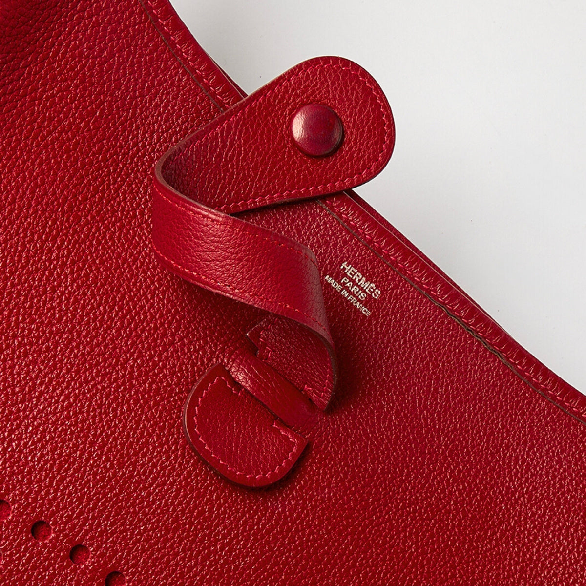 Evelyne is the embodiment of cute meets functional; as the origins of this bag was crafted for horse groomers in mind. The perforated 'H' logo was designed to face inward as a ventilation system to aerate the contents of the bag and keep brushes and sponges dry. Constructed from durable clemence leather in a Burgundy shade, its adjustable fabric strap allows for versatile wearing options. Inside, you'll find a spacious interior which is complemented by gold plated hardware and a button enclosure. This Large Evelyne exudes understated luxury and is a must-have to try with your COCOON membership.