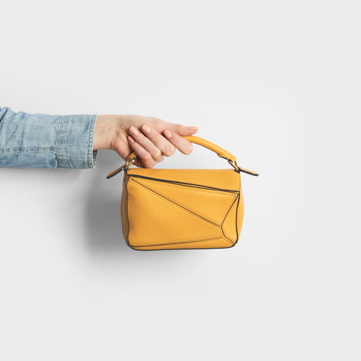 Loewe’s Puzzle rose to cult-status after its initial release in 2015, and remains one of the brand’s bestsellers to this day. Designed by Jonathan Anderson to be uniquely recognisable while still being sleek and understated, this irresistible mini size is the perfect addition to any outfit. Whether you choose to swing her by your side using the chunky top handle or add the detachable shoulder strap to wear as a practical crossbody, there are endless ways to style this modern style.