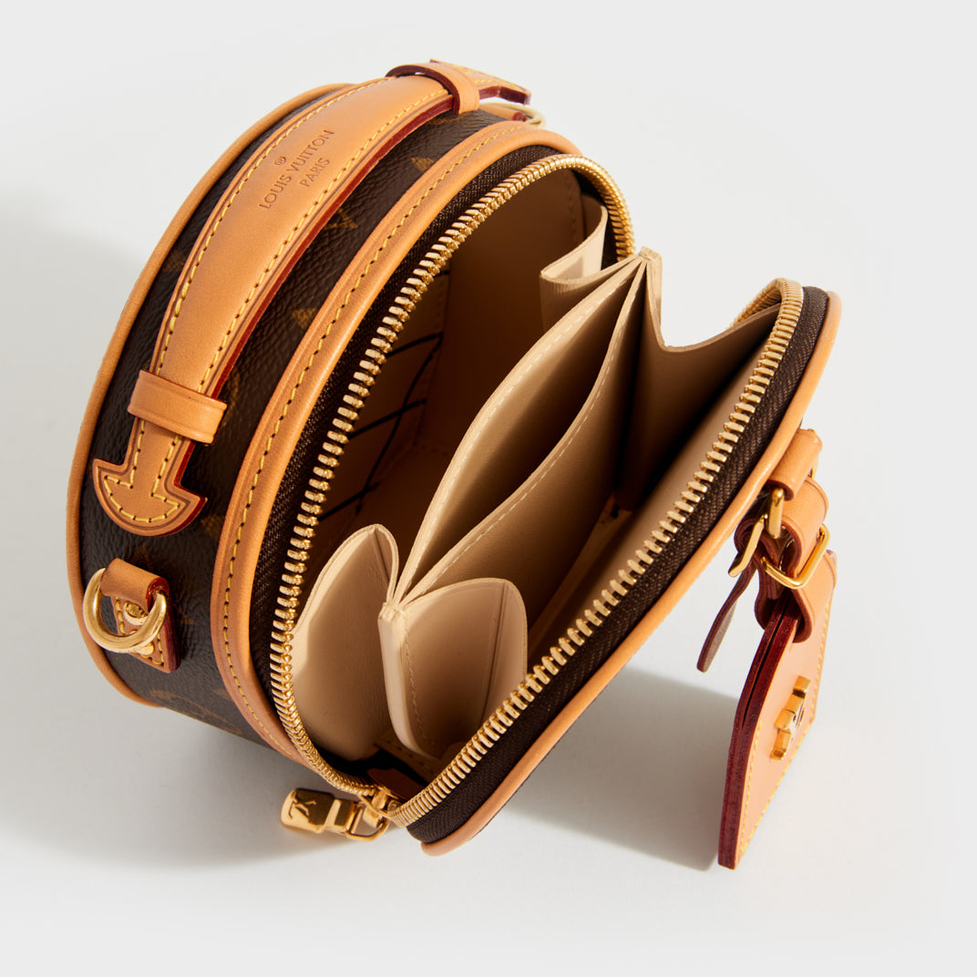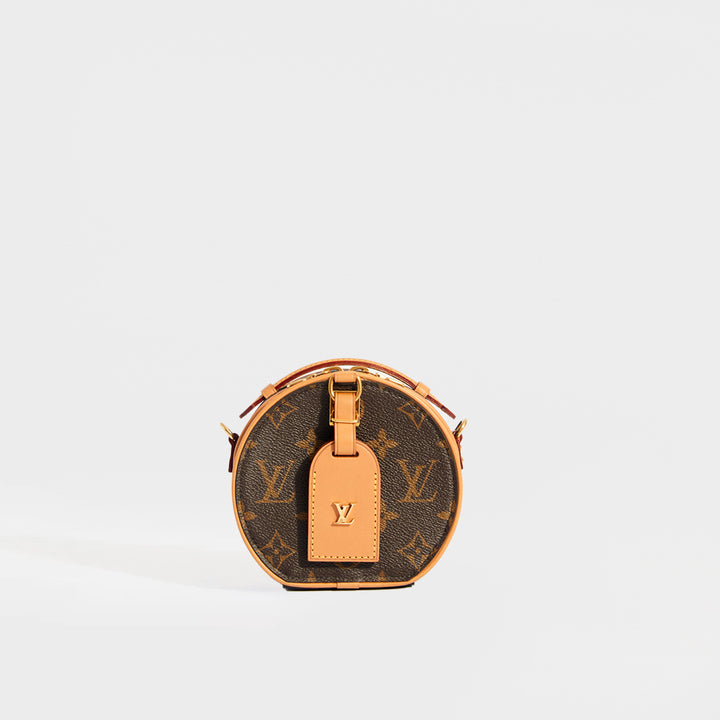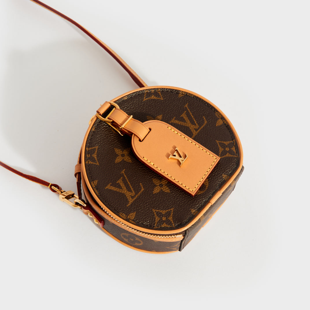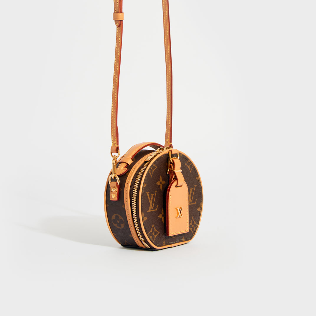 Established in 1837 as a luggage maker, the spirit of travel continues to inspire designs in each seasonal Louis Vuitton collection. The Monogram Boite Chapeau bag, translating to hat box, is made from the brand’s iconic Monogram Canvas print, featuring the ‘LV’ logo, circle, flower, and quatrefoil pattern. Wear this as a top-handle bag or add the adjustable shoulder strap for a hands-free crossbody option.