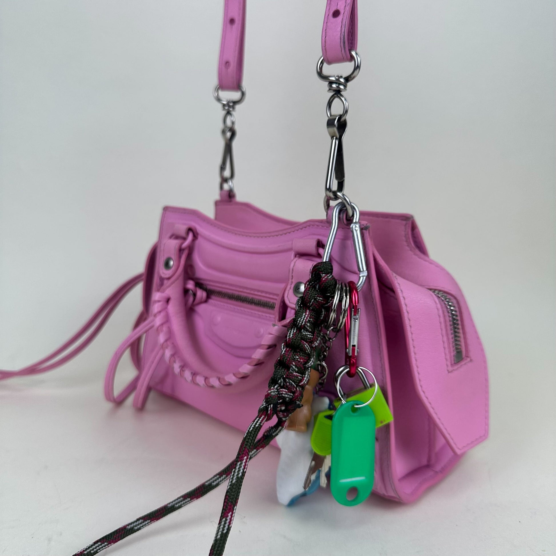 Say hello to the trendiest bag of the moment topped with the cutest assortment of easily removable bag charms. Featuring a troll doll, a dolphin charm, an iconic frame of Britney and Justin, and more, this is the perfect addition to any Y2K-loving bag wardrobe. The refined Mini Neo style is a modern interpretation of the classic Balenciaga City bag and we can't get enough of this rose version in buffed calfskin. With it's geometric shape and edgy buckle detailing, this is the ultimate arm candy for those in the know. Featuring an adjustable and detachable strap, a zipped closure and zipped inner pocket, all eyes will be on the embossed logo on the bag's front exterior.
