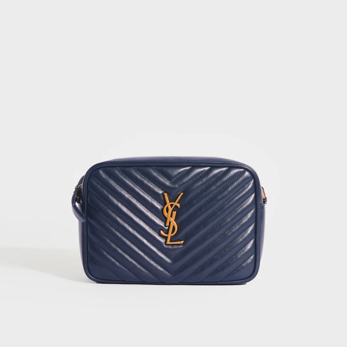 Lou Camera Bag in Navy Leather with Gold Hardware