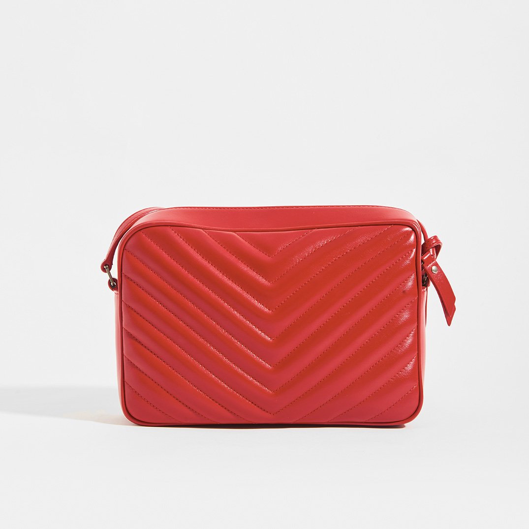 Lou Camera Bag in Red Matelassé Leather with Silver Hardware