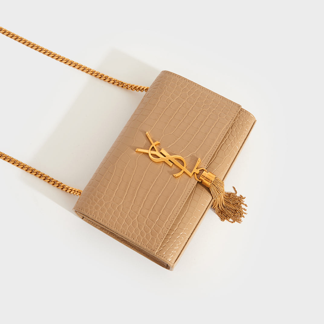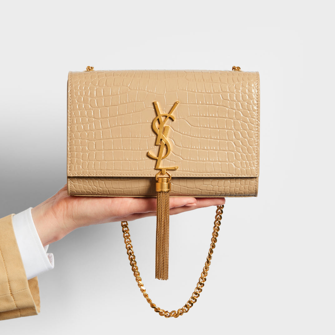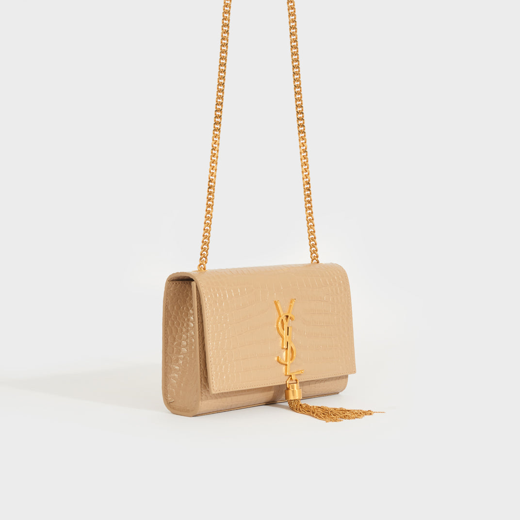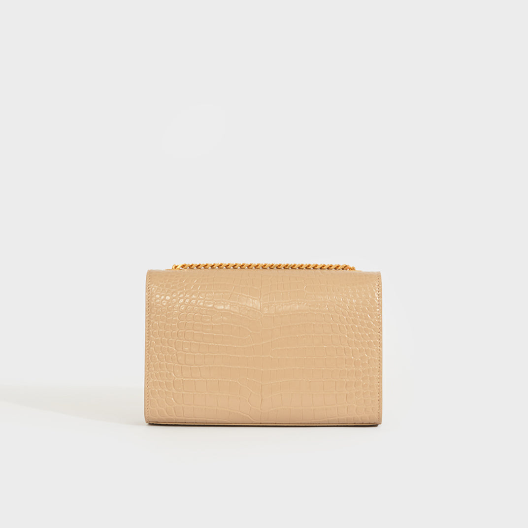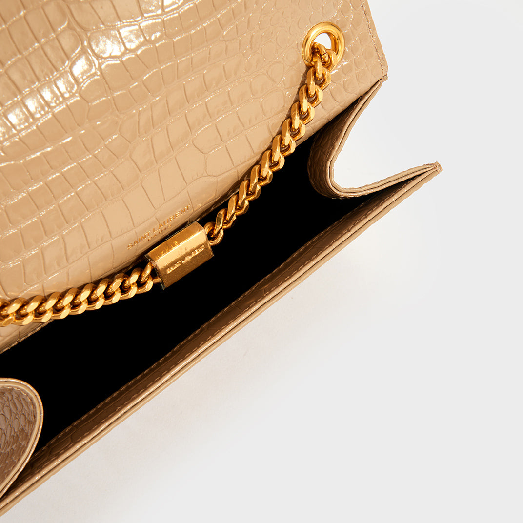 Small Kate Embossed Leather Shoulder Bag in Dark Beige