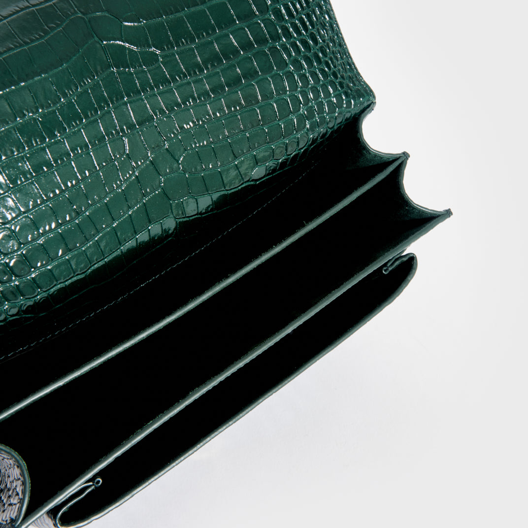 Sunset Medium Leather Shoulder Bag in Dark Mint