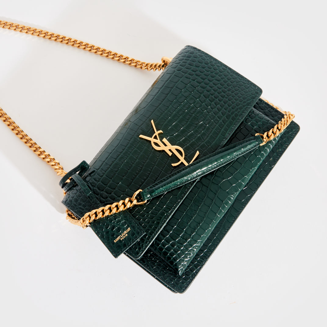 If you’re after an all time classic, it has to be Saint Laurent. The signature YSL motif is here in shining gold hardware is striking against a backdrop of luxurious croc-embossed deep green calf leather, instantly elevating any outfit from day-to-night. The iconic chain strap can be worn long as a crossbody or doubled up over the shoulder and has leather shoulder pads for comfort. Perfection in bag form.