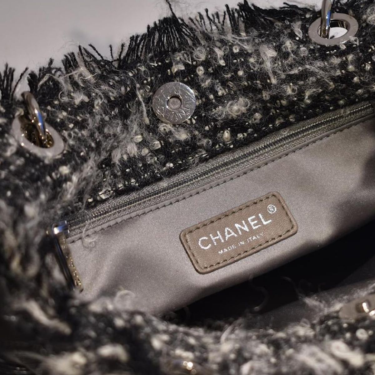 Upgrade your work wardrobe with this oversized leather Chanel tote. Crafted from soft black lambskin leather, it features the iconic CC logo stitched on the exterior, spacious interior with single zip pocket and silver hardware shoulder straps with woven leather detailing. You'll be the envy of the office with this vintage plus-one.