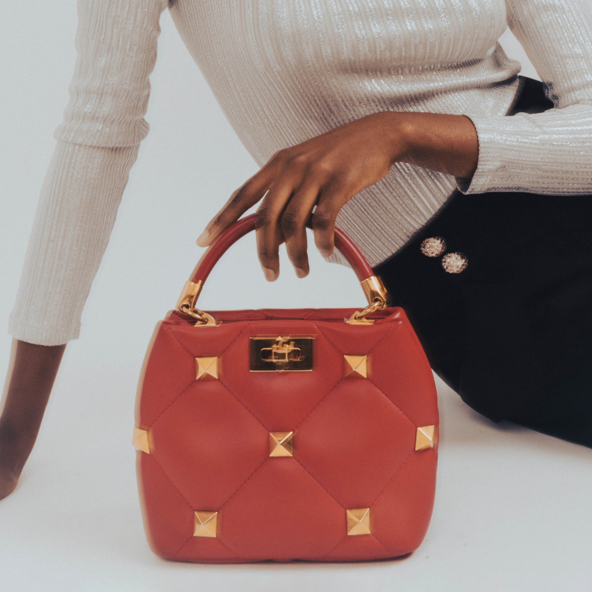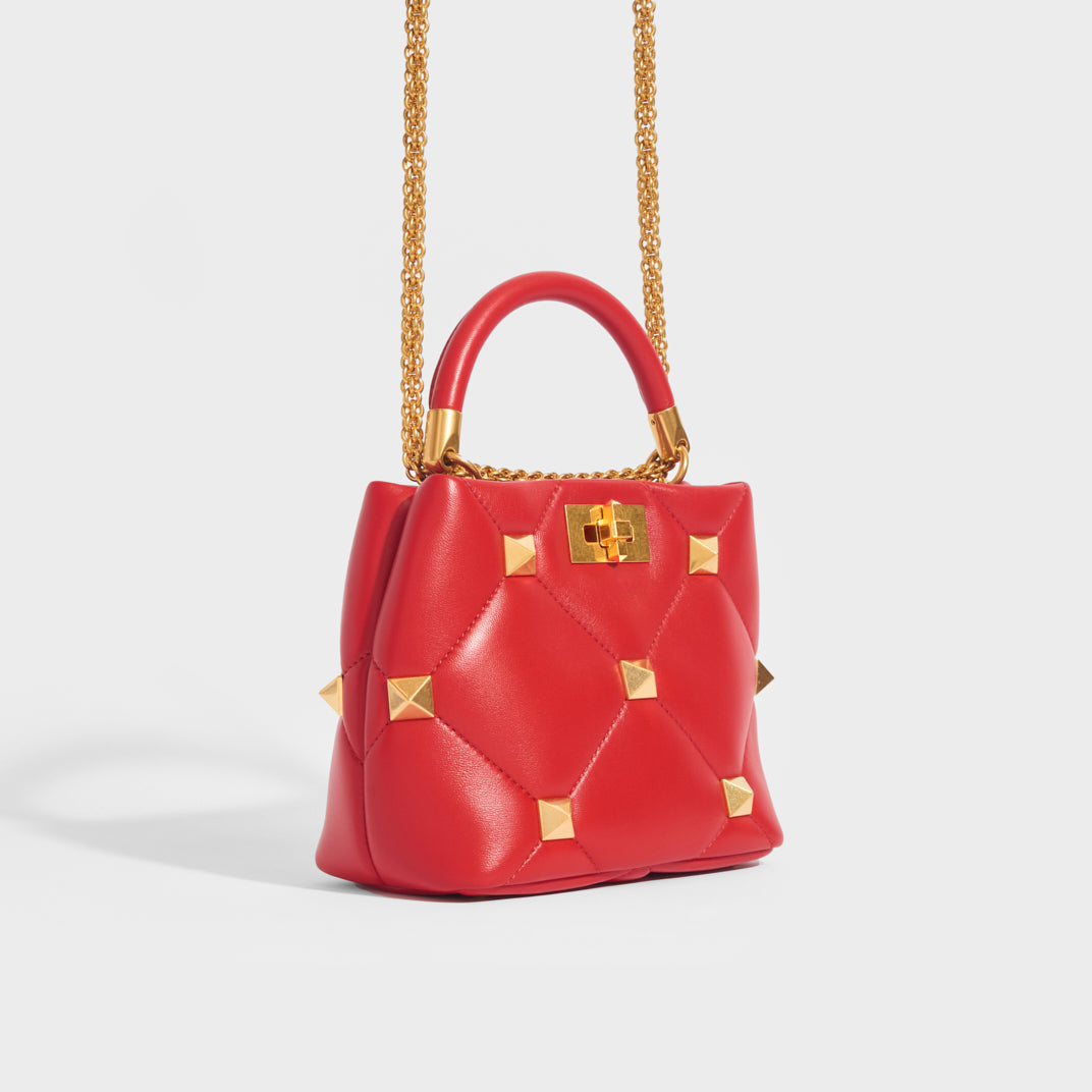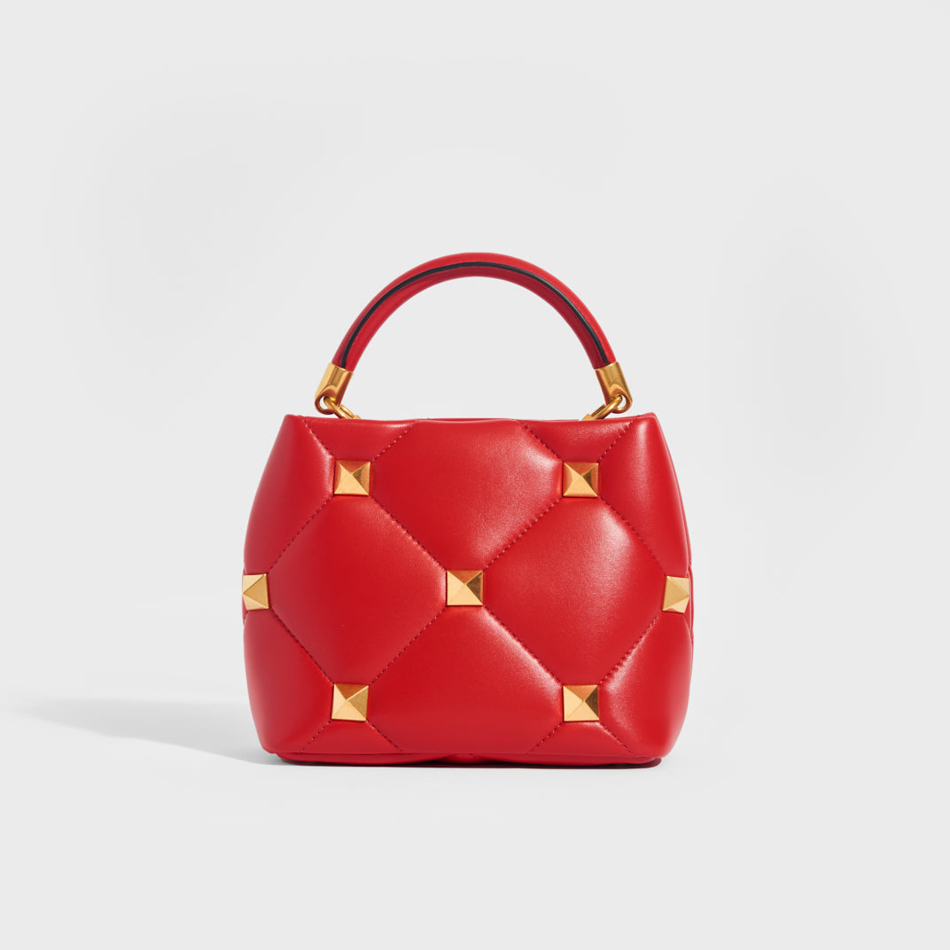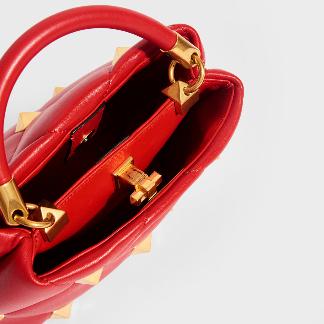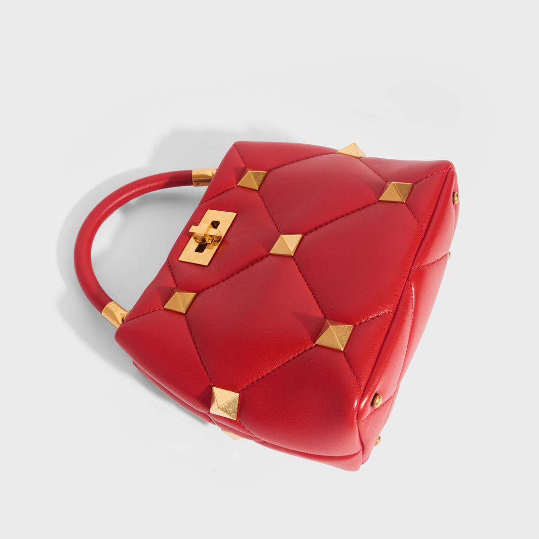 Garavani Roman Stud Small Quilted Leather Tote in Red